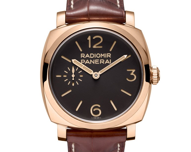 From Panerai this year came the Radiomir 8 Days GMT Oro Rosso. This watch’s style is definitely inspired by watches of yesteryear. The in-house movement is a version of Officine Panerai’s P.2002 calibre. The power reserve on this movement lasts up to eight days. The case is a lovely pink gold, 45 millimeters, with a brown dial and brown alligator strap.